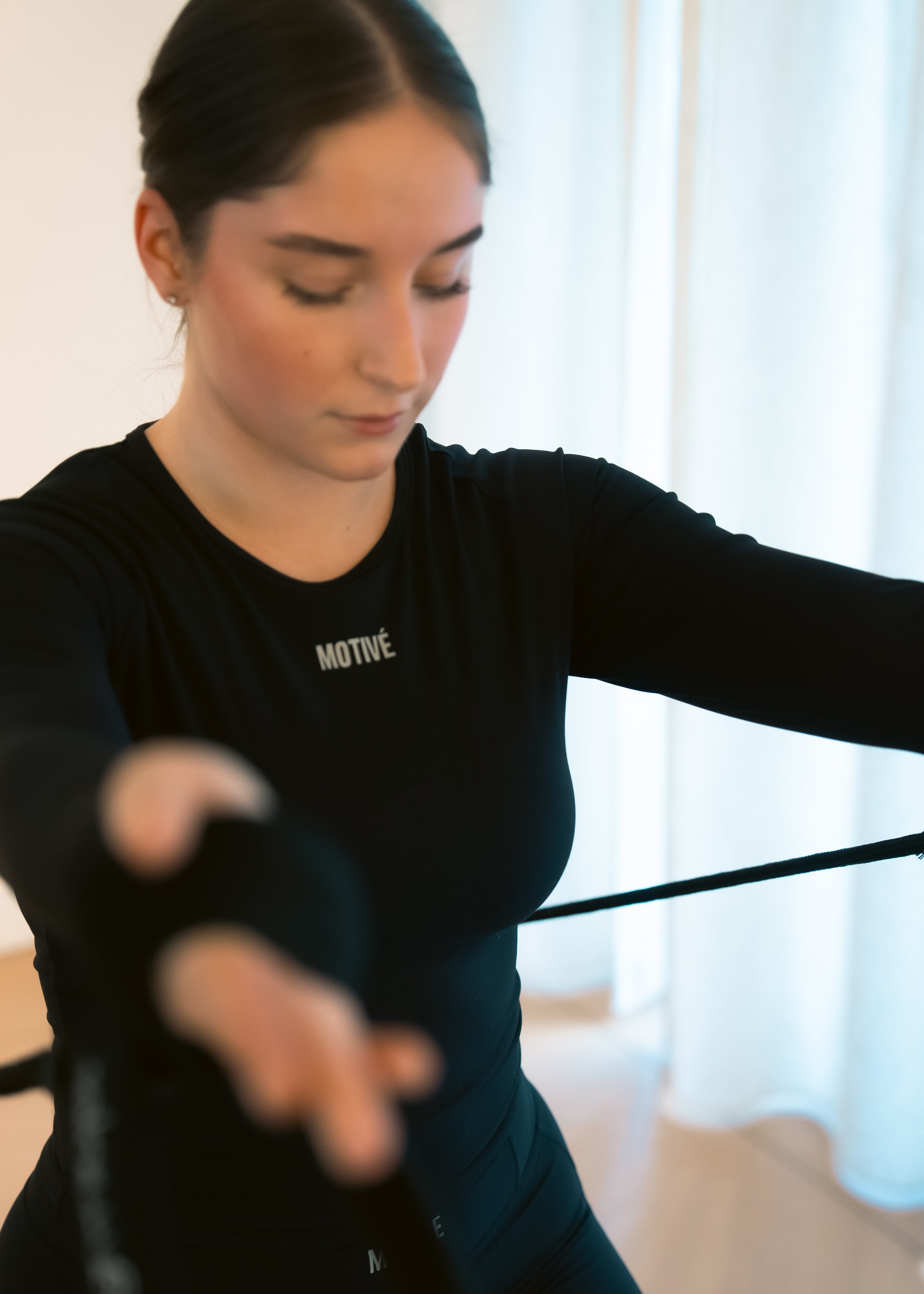 Inspired by the balance and strength of Pilates, our high-quality pieces move with you, supporting every stretch and pose.